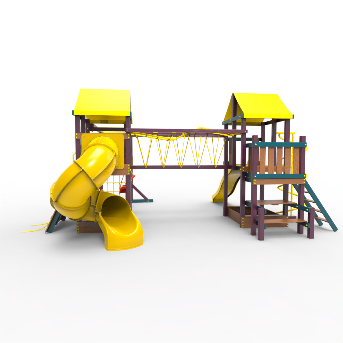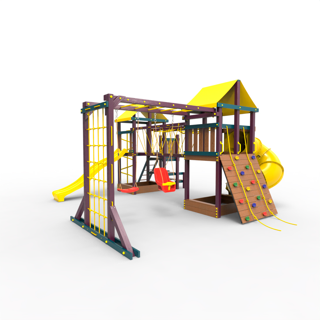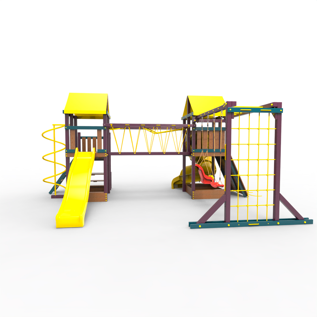 | Комплектация | Два домика|Песочница|Лестница|Шторм-трап|Скалодром|Рукоход|Руфер|Балкон|Столик с лавочками|Подвесной мост|Горка|Спираль|Сеть для лазания|Качели|Заливная горка|ЗигЗаг|Переправа |